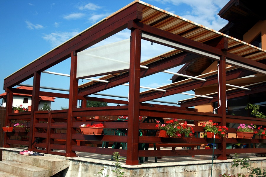 - terase fixe, aceste tipuri de terase au o structura fixa de sustinere si un material de acoperire. Vin in mai multe forme, dreptunghiulare, patrate, hexagonale, etc, pot fi realizate la comanda in functie de nevoie si preferinte.