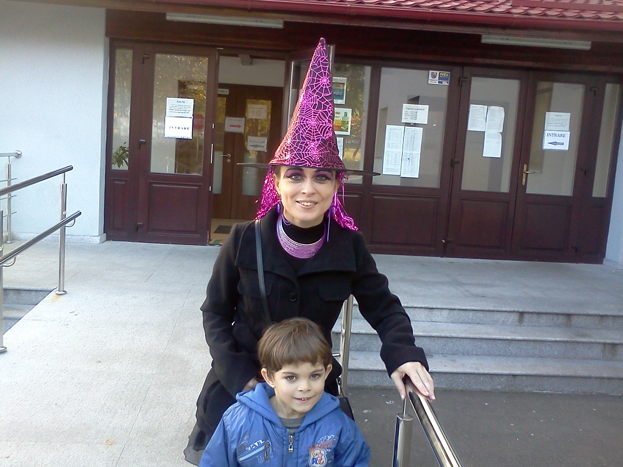 Am fost si la party de Halloween, sau am incercat, pentru ca Dragos nu a vrut sa intre de la usa fiindca s-a speriat de baloane si de galagie. Mai incercam la anul. 🙂