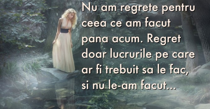 Am fost si am vizitat cateva pesteri, m-am maritat, am purtat pantoci cu toc. Restul nu le-am facut si nici nu cred ca le voi face.