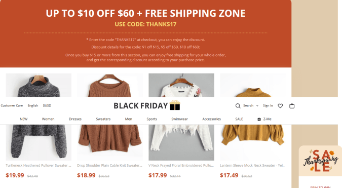 In case you haven’t noticed, Zaful Thanksgiving Sale has begun! $10 off over $60 discounts and free orders with free shipping.! Great deals on trendiest fall fashion and winter clothes. ZafulThanksgiving day sale is waiting for your visit!