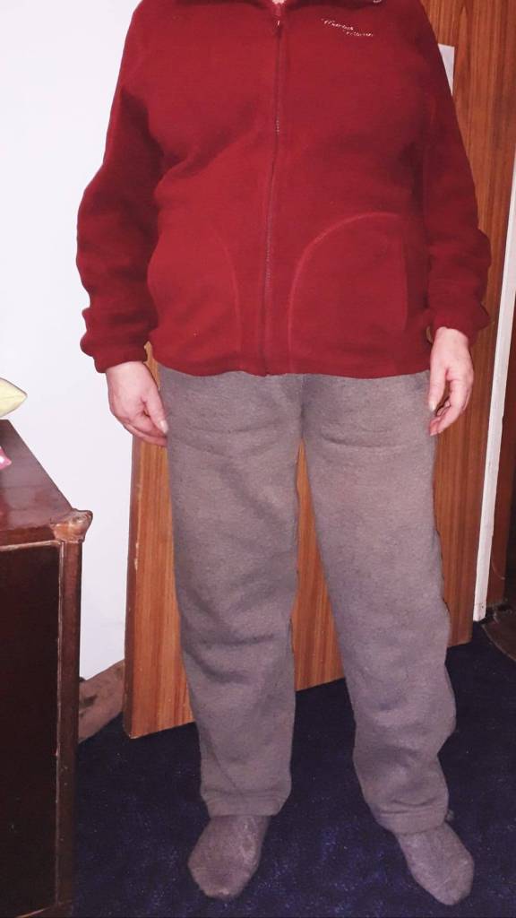 Am luat doua perechi de pantaloni de trening Black Cuffed Joggers – Lizzie, una pe negru si cealalta gri inchis, ambele marimea 14 si ii vin perfect lui mama. Materialul e diferit, unii sunt mai grosi si ceilalti un pic mai subtiri. Sunt largi asa ca puteti purta fara grija colanti pe dedesubt, la iarna.