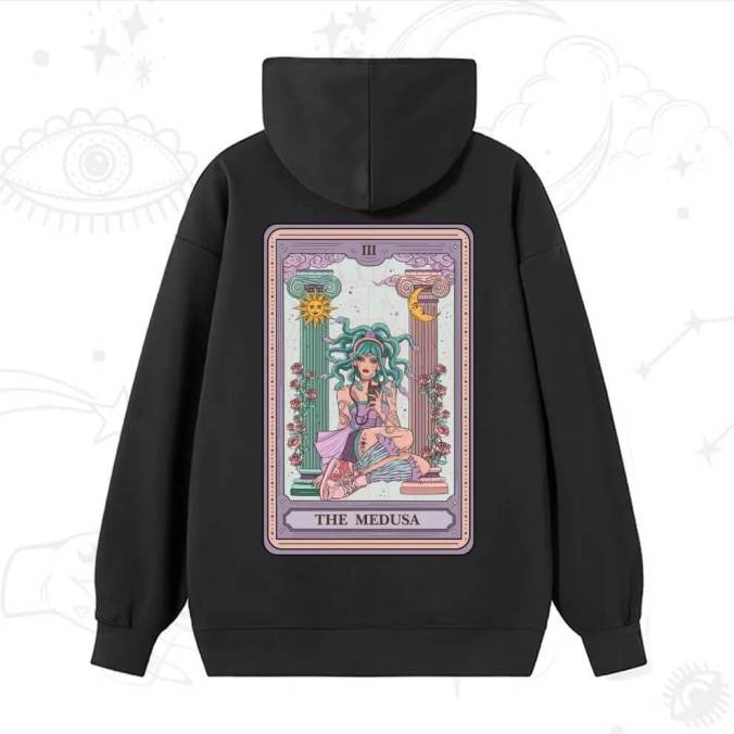 For cooler days, tarot hoodies with tarot symbols are the must-have pieces of the season. Inspired by the major arcana, these hoodies are more than just articles of clothing, they convey powerful messages of destiny, intuition and transformation. A „High Priestess” hoodie is ideal for intuitive and dreamy women, while the „Wheel of Fortune” symbolizes change and new opportunities. Choose an oversized model for maximum comfort and wear it with pride, like a magical shield that protects you every day.