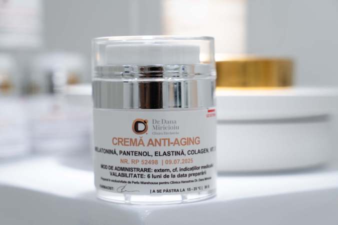 „Crema Anti-Aging cu Melatonină este o cremă de față activă anti-îmbătrânire și are acțiune directă împotriva schimbărilor legate de vârstă, netezește ridurile, întărește pereții capilarelor, neutralizează influența radicalilor liberi și încetinește procesul de îmbătrânire. Ca antioxidant, melatonina este de 10 ori mai puternică decât vitamina E, are o capacitate antioxidantă de 13 ori mai mare decât vitamina C și este de 70 de ori mai eficientă decât vitamina C, iar legat de suprimarea deteriorării ADN-ului este la nota 8.9 din 10. Pe lângă Melatonină, Crema Anti-Aging mai conține și alți ingredienti activi: pantenol, elastină, colagenul și vitamina E – fiecare având roluri și efecte distincte. Crema Anti-Aging & Longevitate devine astfel aliatul ideal pentru cei care își doresc o îngrijire completă, cu rezultate vizibile și efect protector pe termen lung. Crema Anti-Aging cu Melatonină se potrivește tuturor tipurilor de piele.”, a mai declarat Dana Miricioiu, medic chirurg estetician.