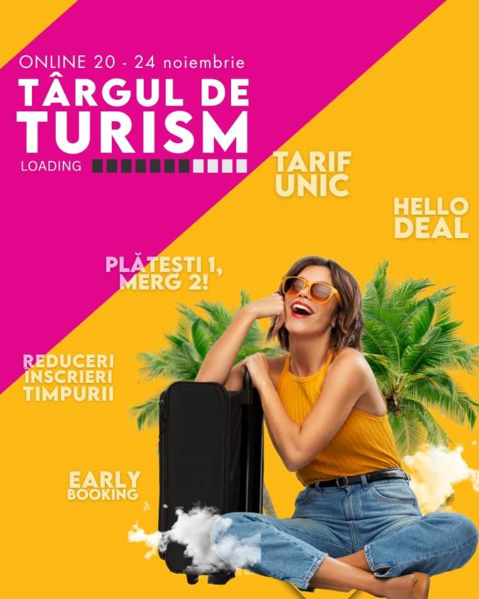 In perioada 20–24 noiembrie, agentia de turism Hello Holidays organizeaza cel mai mare targ online de turism dedicat vacantelor de iarna si ofertelor pentru anul 2026. Timp de cinci zile, turistii romani se pot bucura de reduceri speciale la circuite, sejururi si pachete de Revelion, atat pentru destinatii europene, cat si pentru destinatii exotice.