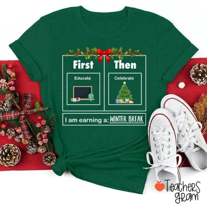 I hope you enjoyed my top and understood that during the holidays, teachers don’t just teach, they express themselves. Through cardigans, ugly sweaters or cool teacher christmas shirts, each outfit tells a story. About Christmas, about the subject and about the courage to wear what you like.