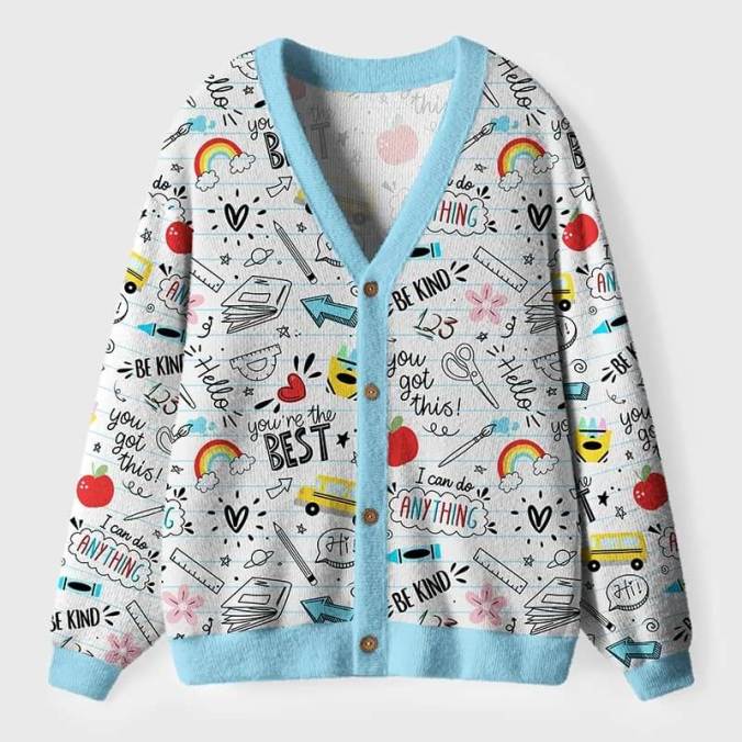 - Profesorul de istorie rămâne consecvent stilului sobru. Puloverele lui urâte(ugly cardigan sweater for teacher) arată de parcă au fost martore la Marea Unire, iar cardiganele par moștenite dintr-un muzeu. Totuși, in scoala sunt si unii tineri care surprind plăcut alegând tricouri cool cu mesaje precum „Six Seven History”. Elevii sunt șocați: profesorul nu doar că predă istorie, dar e și… cool. Sau cel puțin încearcă.